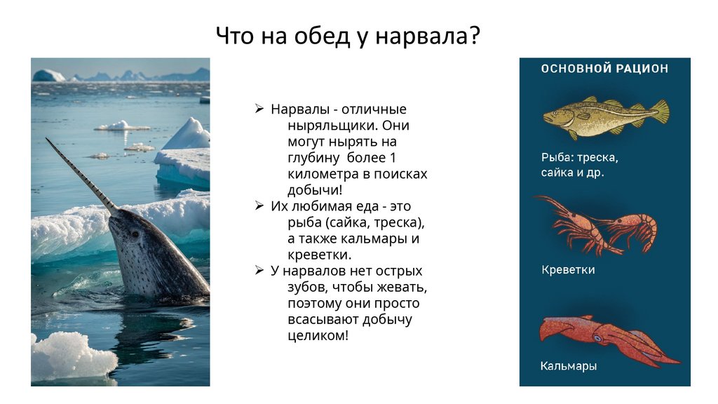Что на обед у нарвала?Ø Нарвалы - отличные