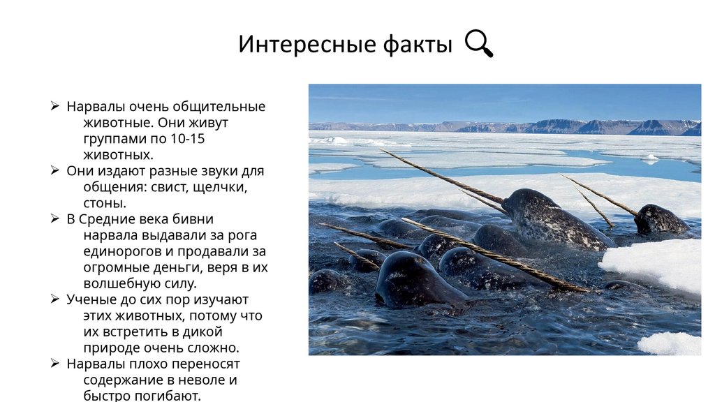 Интересные фактыØ Нарвалы очень общительные