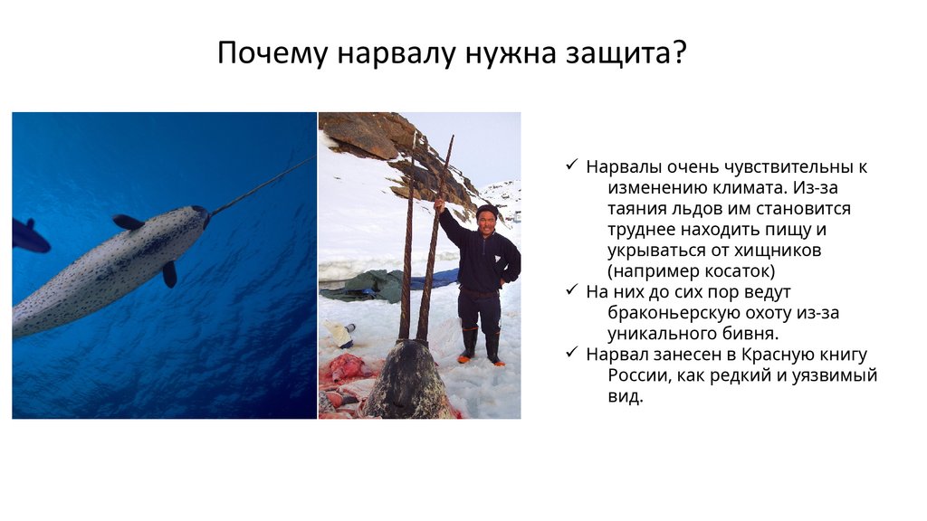 Почему нарвалу нужна защита?ü Нарвалы очень чувствительны к