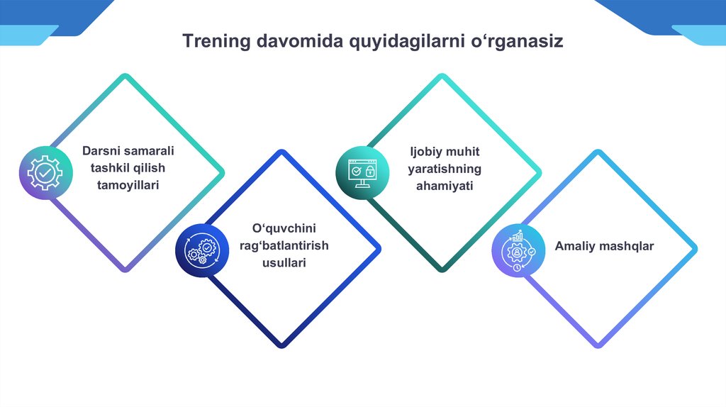 Trening davomida quyidagilarni o‘rganasizDarsni samarali