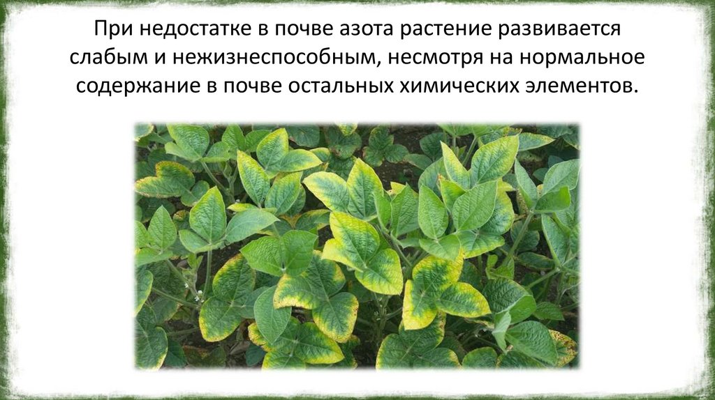 При недостатке в почве азота растение развиваетсяслабым и нежизнеспособным, несмотря на нормальное