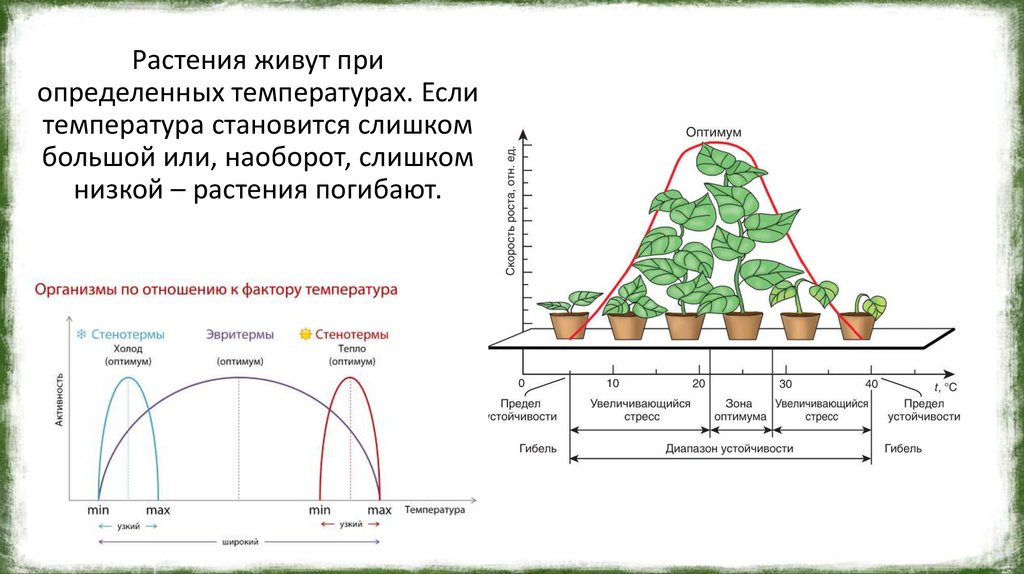 Растения живут приопределенных температурах. Если