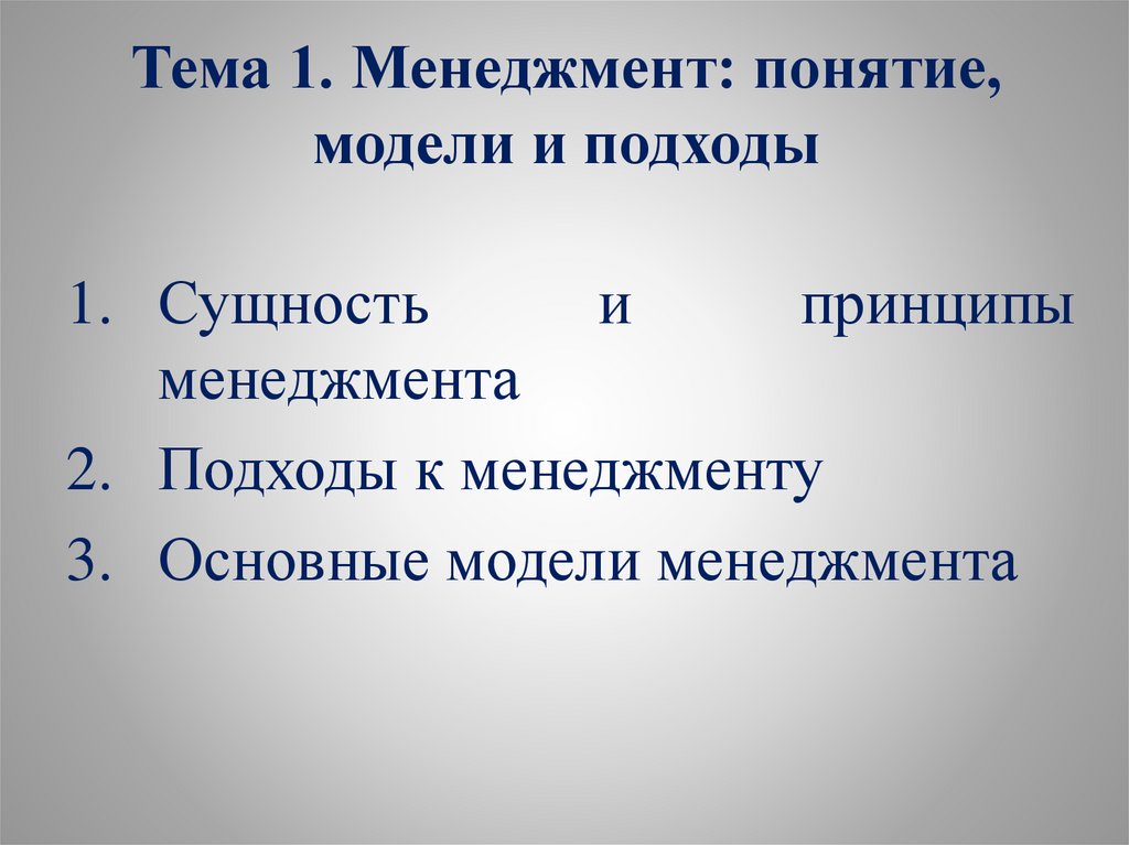 1. Тема 1. Менеджмент: понятие, модели и подходы
