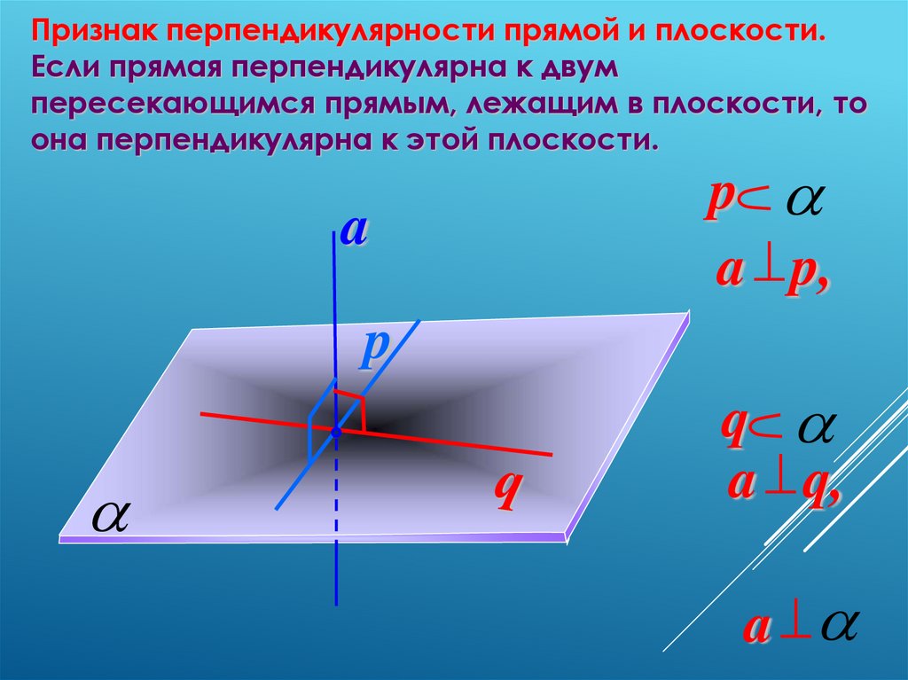 Признак перпендикулярности прямой и плоскости.Если прямая перпендикулярна к двум