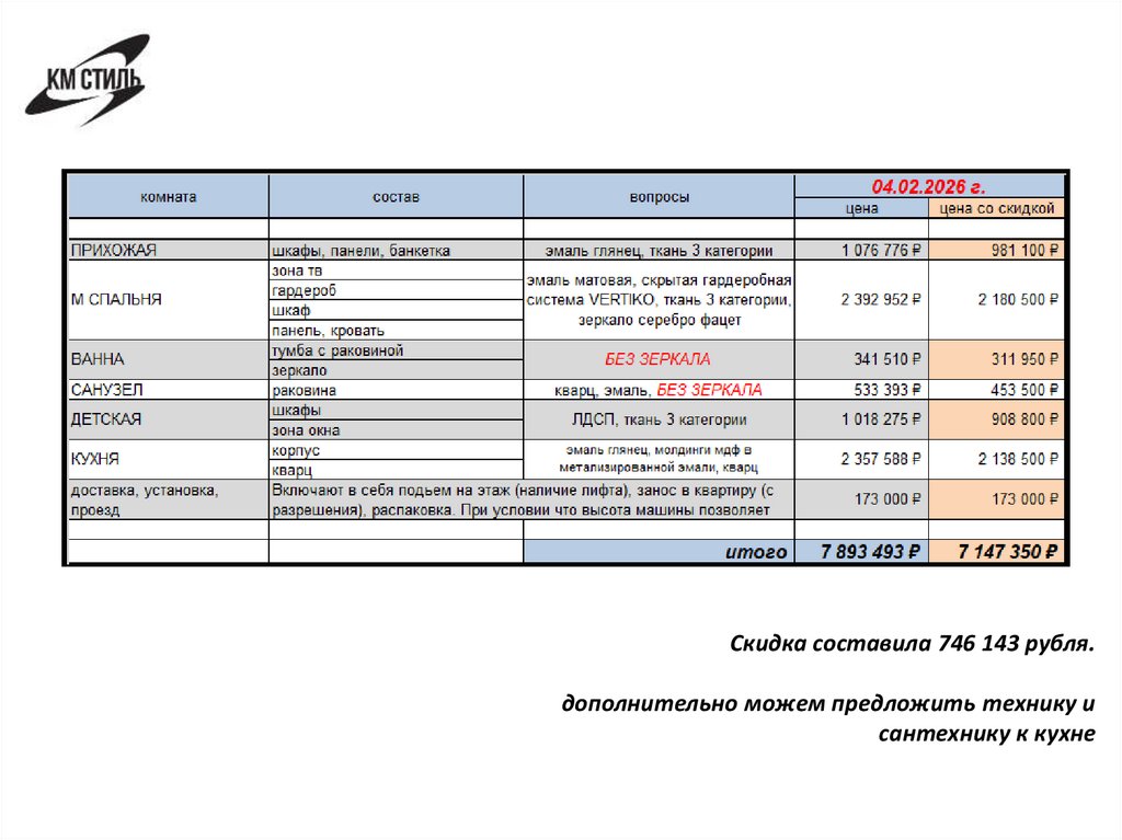 Скидка составила 746 143 рубля.дополнительно можем предложить технику и