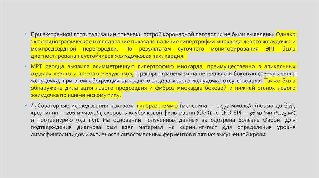 предположительно болезни Фабри, пациент был госпитализирован в клинику им. Е. М. Тареева