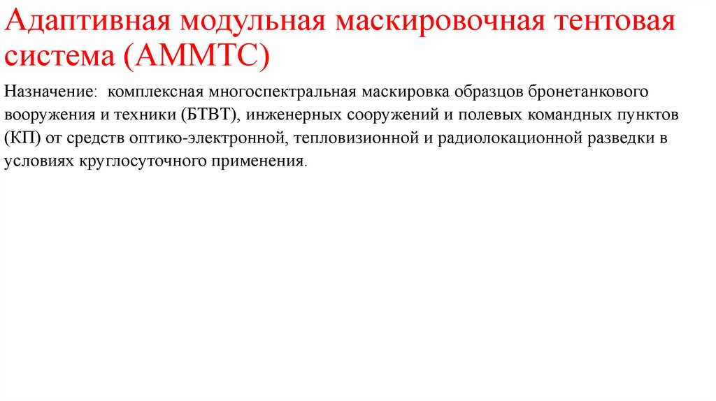 1. Адаптивная модульная маскировочная тентовая система (АММТС)