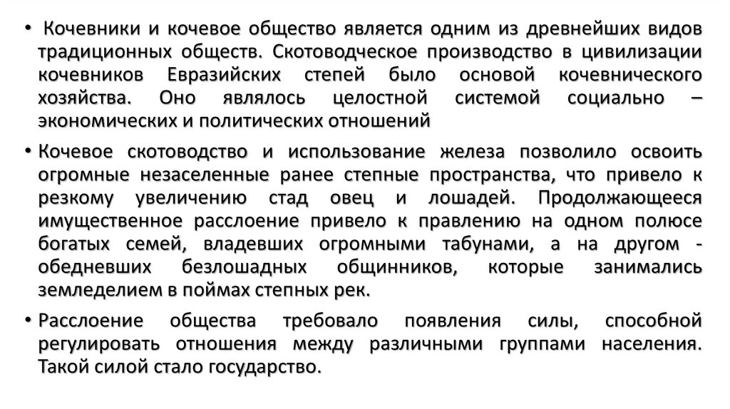 • Кочевники и кочевое общество является одним из древнейших видовтрадиционных обществ. Скотоводческое производство в цивилизации