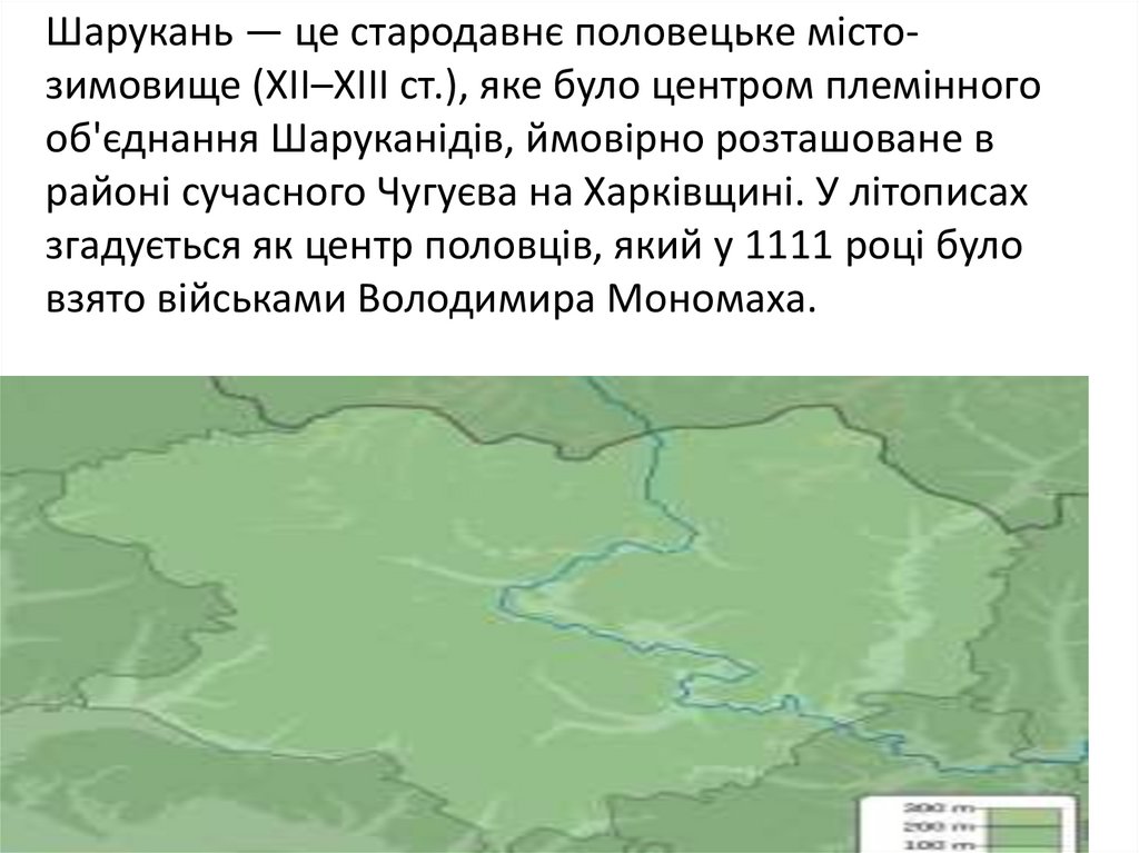 Шарукань — це стародавнє половецьке містозимовище (XII–XIII ст.), яке було центром племінногооб'єднання Шаруканідів, ймовірно розташоване в