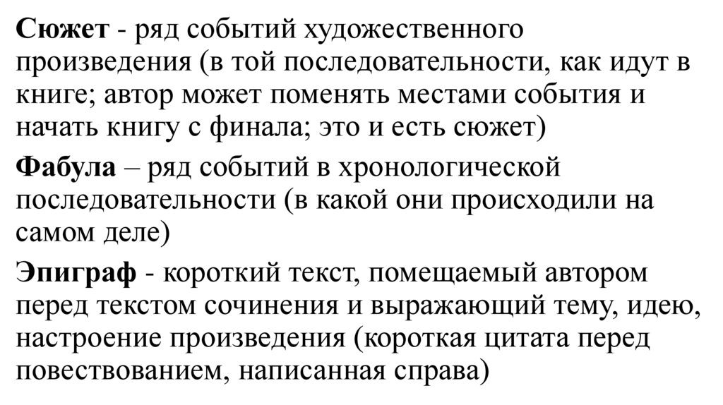 Сюжет - ряд событий художественногопроизведения (в той последовательности, как идут в