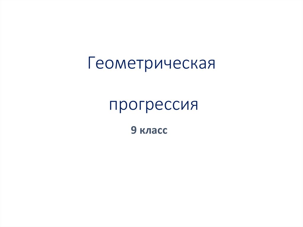 9 класс2. Геометрическая прогрессия