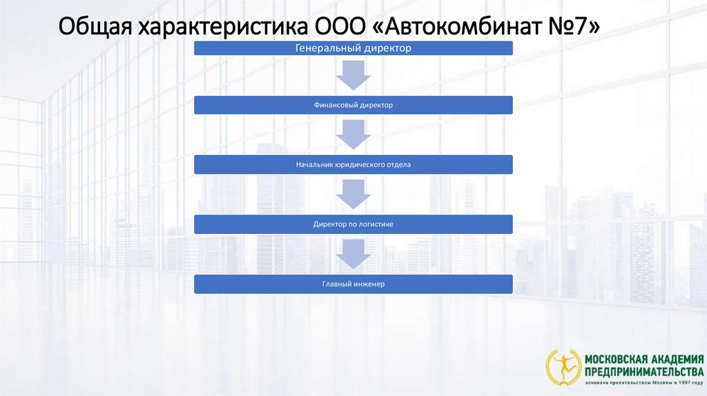 Общая характеристика ООО «Автокомбинат №7»Генеральный директор