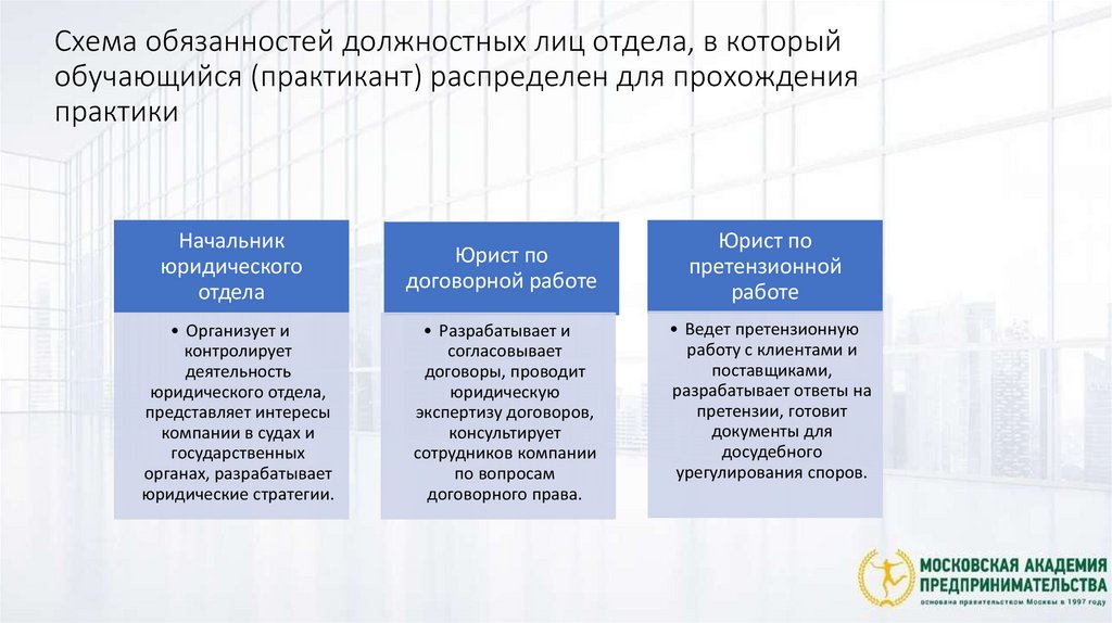 В период прохождения практики в юридическом отделе ООО «Автокомбинат №7» студенты,выполняющие функции помощников юриста, обязаны соблюдать следующие правила: