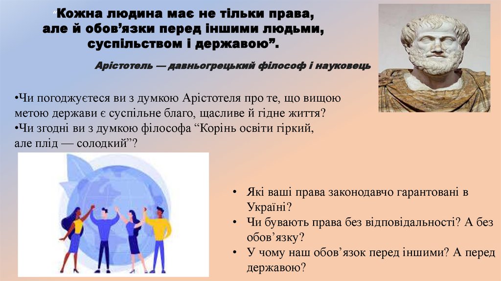 •Чи погоджуєтеся ви з думкою Арістотеля про те, що вищою