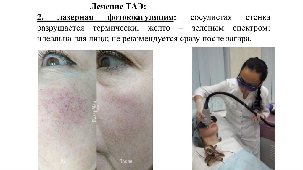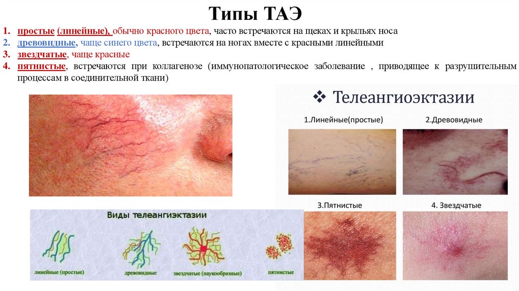 ТАЭ – поверхностные сосуды кожи, расширенные, видимые невооруженным глазом,