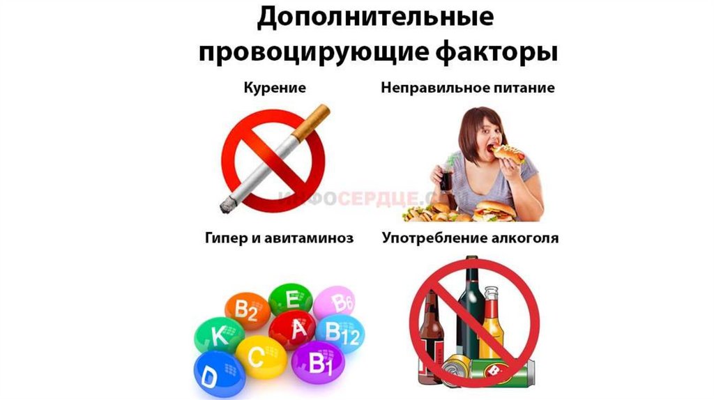 7) образ жизни: чрезмерные физические нагрузки, курение, алкоголь, частые