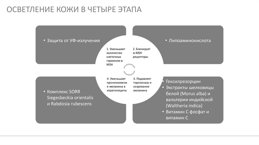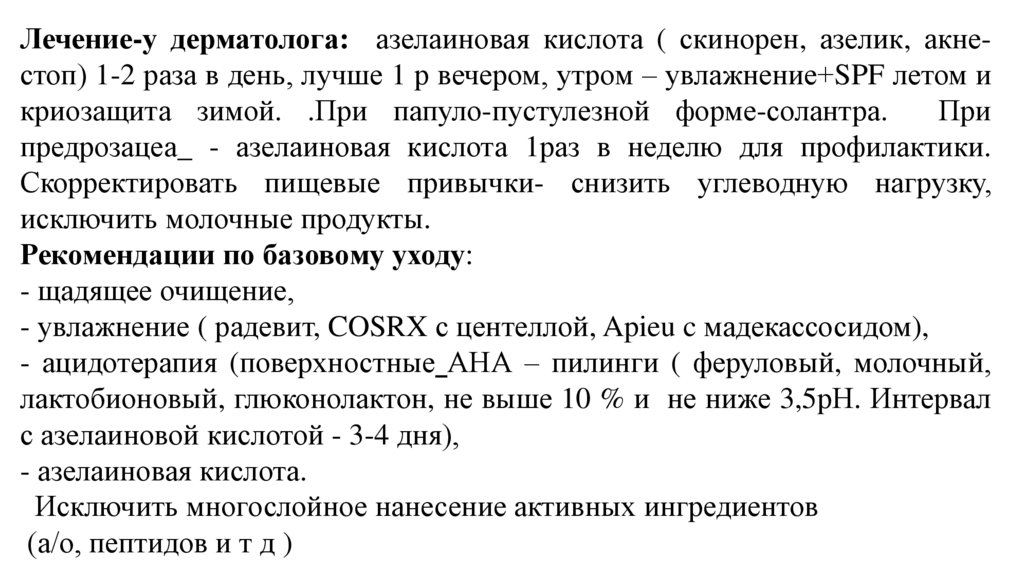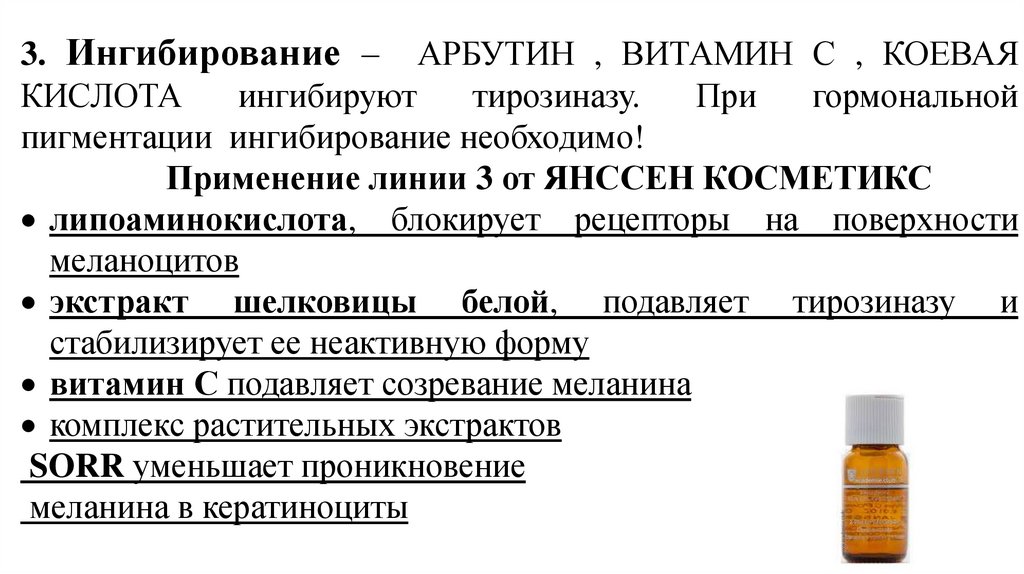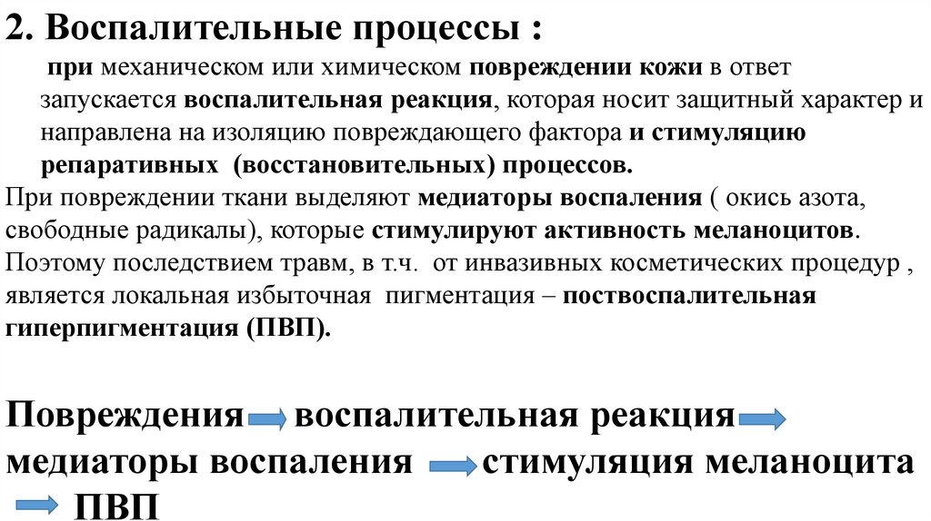 5. Поствоспалительная пигментацияАНА низкой концентрации до 30% + ингибирование +