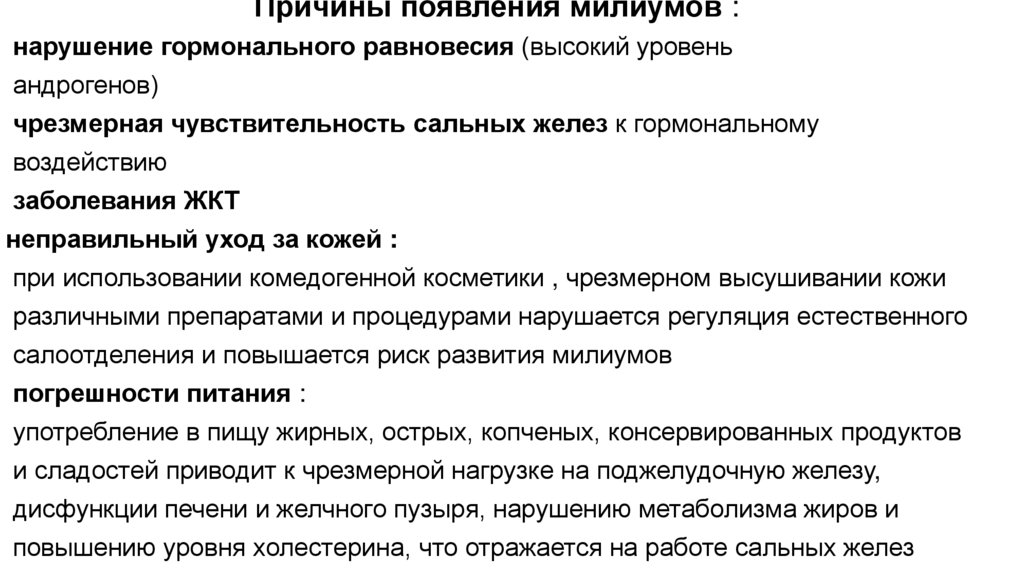 Это разновидность комедонов :• очень мелкие( поры в гипертонусе, чаще при сухой себорее)