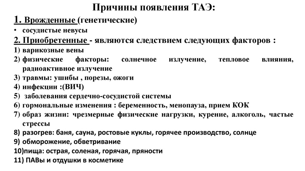 Причины появления ТАЭ:1. Врожденные (генетические)
