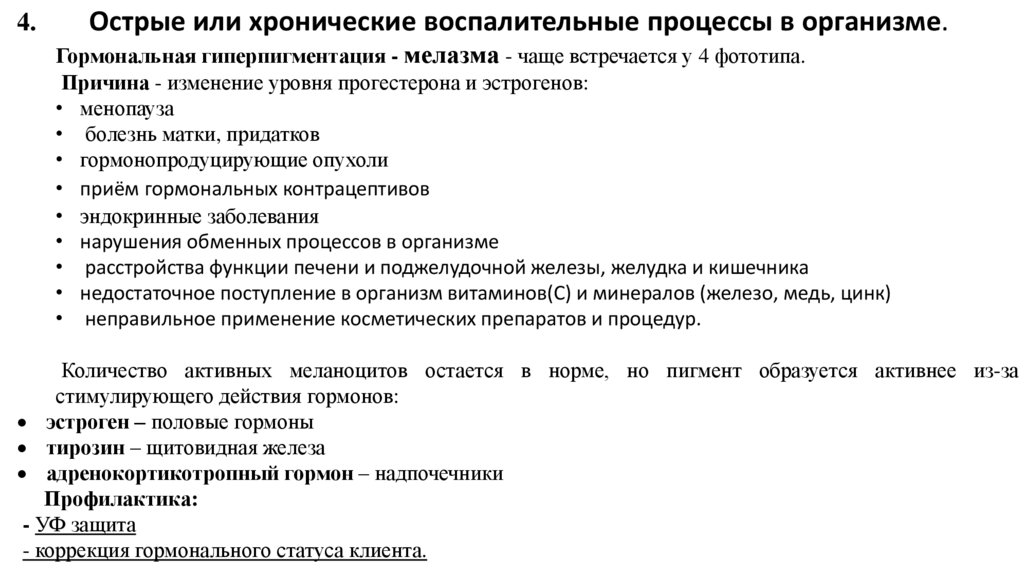6) гормональные изменения : беременность, менопауза, прием КОК