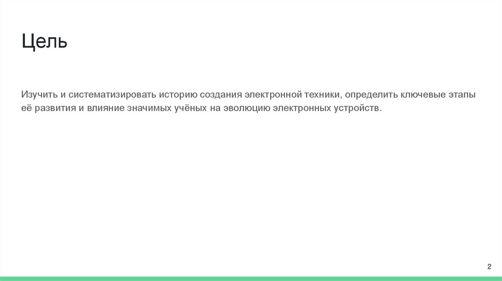 ЦельИзучить и систематизировать историю создания электронной техники, определить ключевые этапы