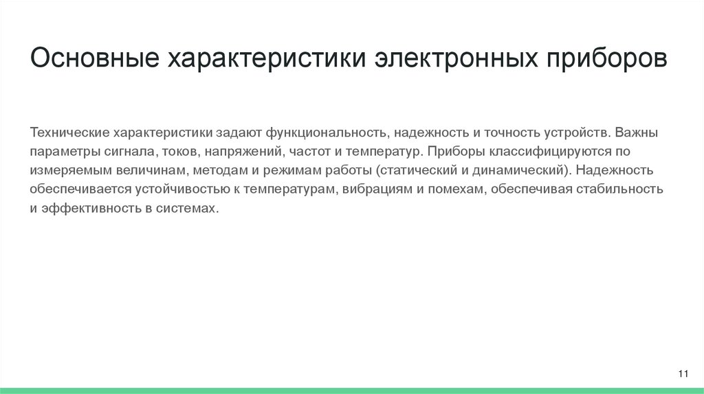 Основные характеристики электронных приборовТехнические характеристики задают функциональность, надежность и точность устройств. Важны