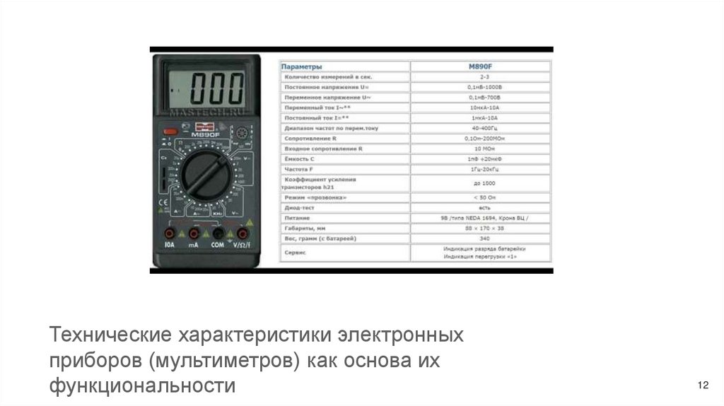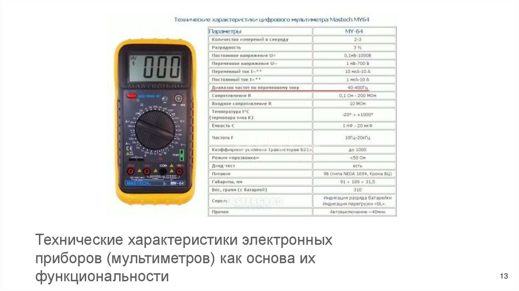 Технические характеристики электронныхприборов (мультиметров) как основа их