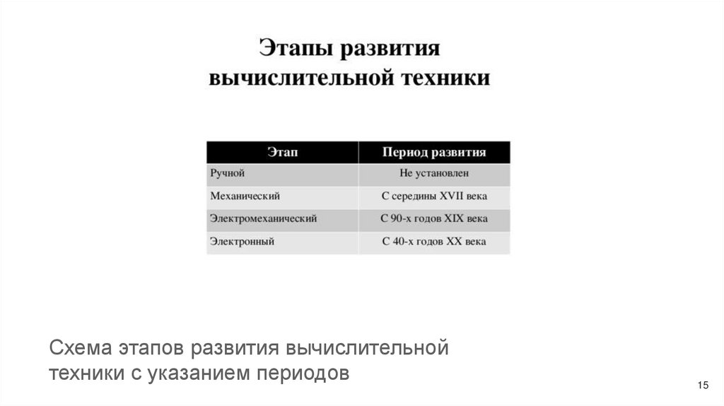 Схема этапов развития вычислительнойтехники с указанием периодов