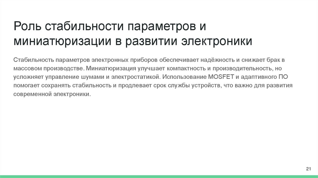 Стабильность параметров электронных приборов обеспечивает надёжность и снижает брак в