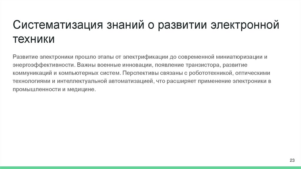 Систематизация знаний о развитии электроннойтехники