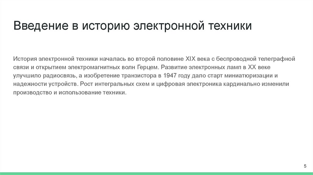 5. Создать информативный материал для понимания истории и развития электронной техники.