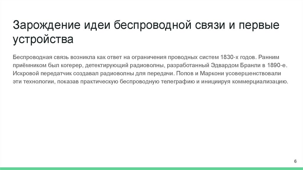 Беспроводная связь возникла как ответ на ограничения проводных систем 1830-х годов. Ранним