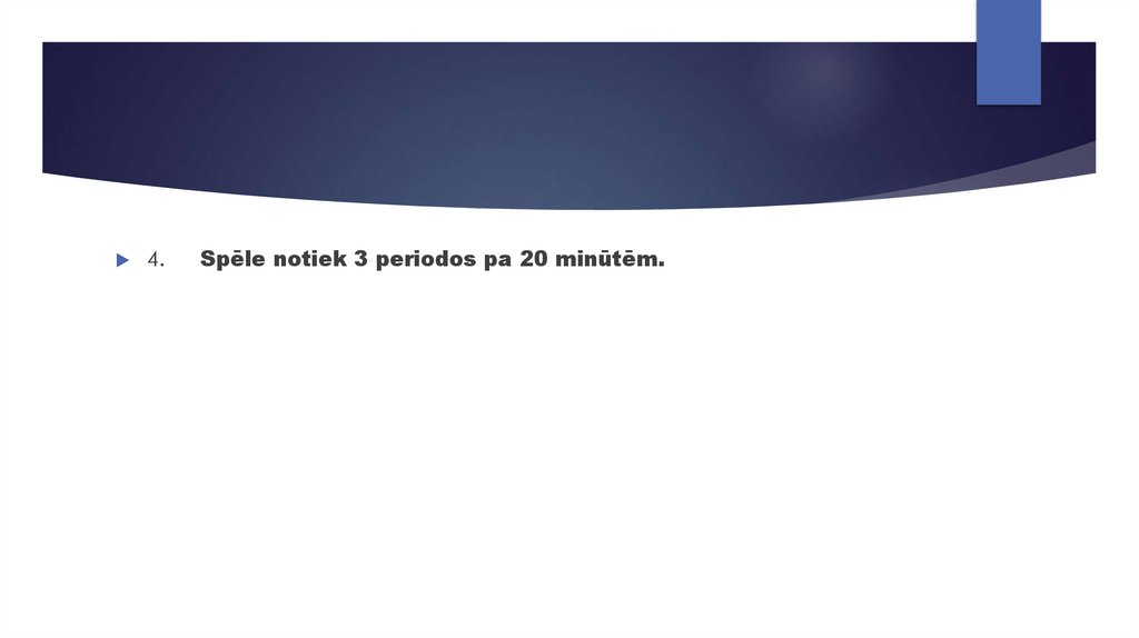 4.Spēle notiek 3 periodos pa 20 minūtēm.