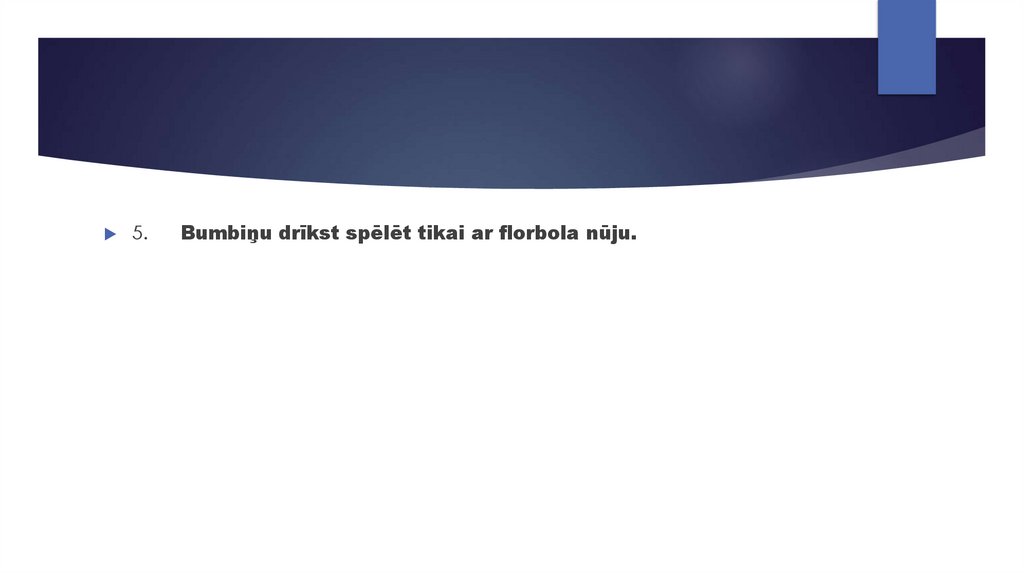 5.Bumbiņu drīkst spēlēt tikai ar florbola nūju.