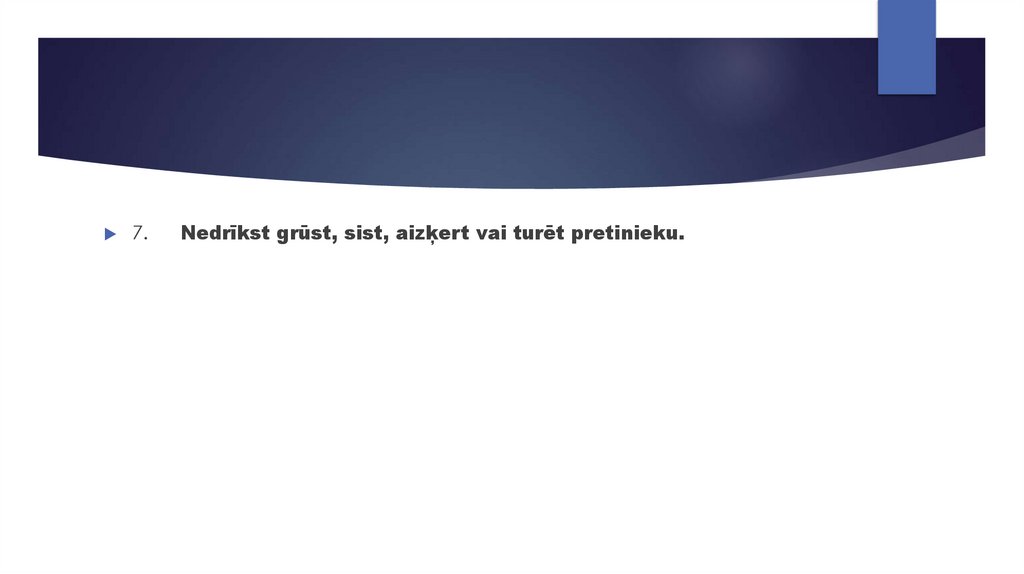 7.Nedrīkst grūst, sist, aizķert vai turēt pretinieku.