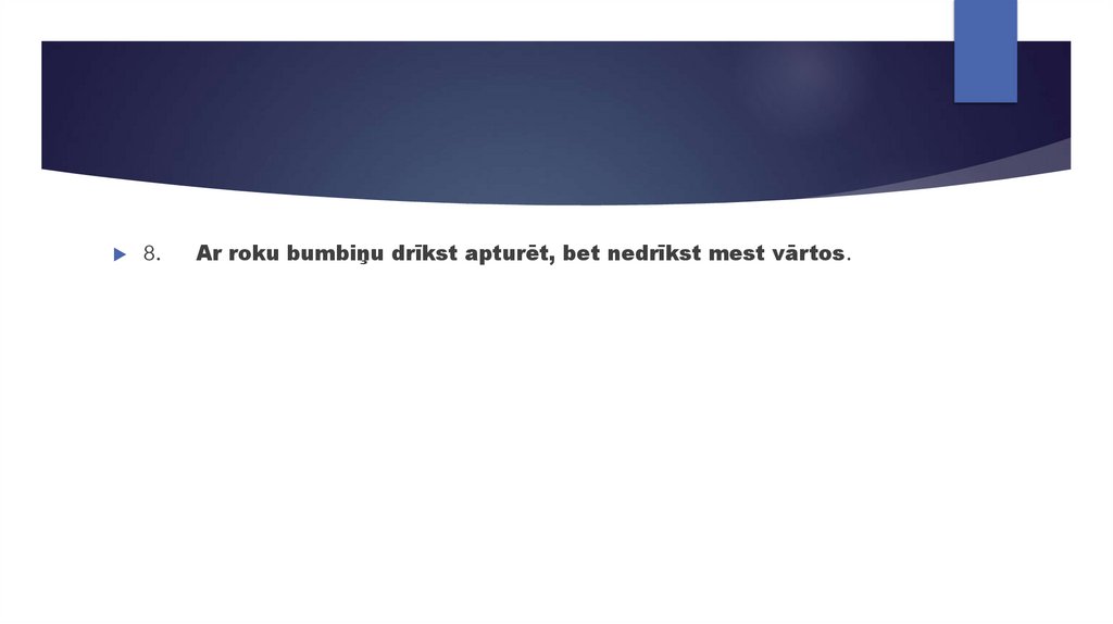 8.Ar roku bumbiņu drīkst apturēt, bet nedrīkst mest vārtos.