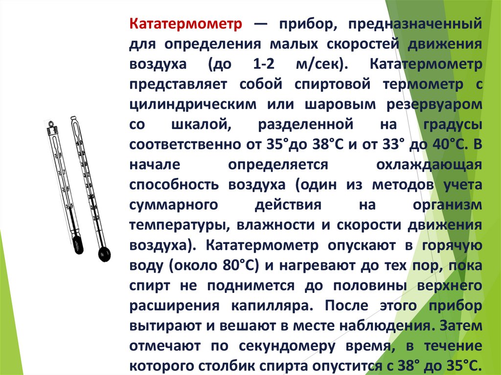 Кататермометр — прибор, предназначенныйдля определения малых скоростей движения