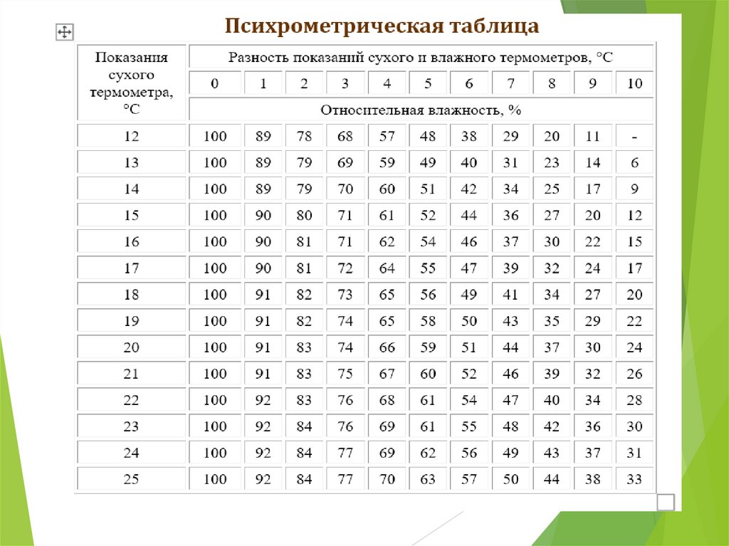 Принцип действия психрометра основан наохлаждении “влажного” термометра за счет