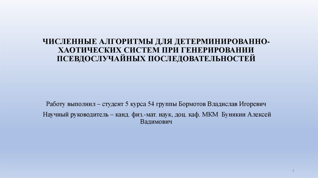 1. ЧИСЛЕННЫЕ АЛГОРИТМЫ ДЛЯ ДЕТЕРМИНИРОВАННО-ХАОТИЧЕСКИХ СИСТЕМ ПРИ ГЕНЕРИРОВАНИИ ПСЕВДОСЛУЧАЙНЫХ ПОСЛЕДОВАТЕЛЬНОСТЕЙ