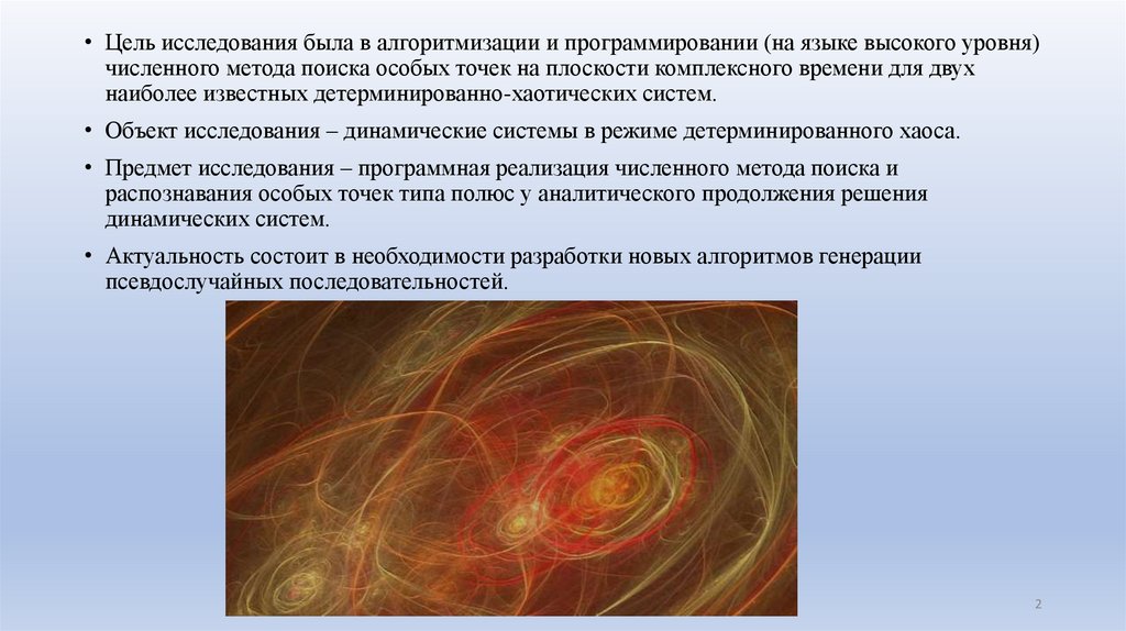 • Объект исследования – динамические системы в режиме детерминированного хаоса.