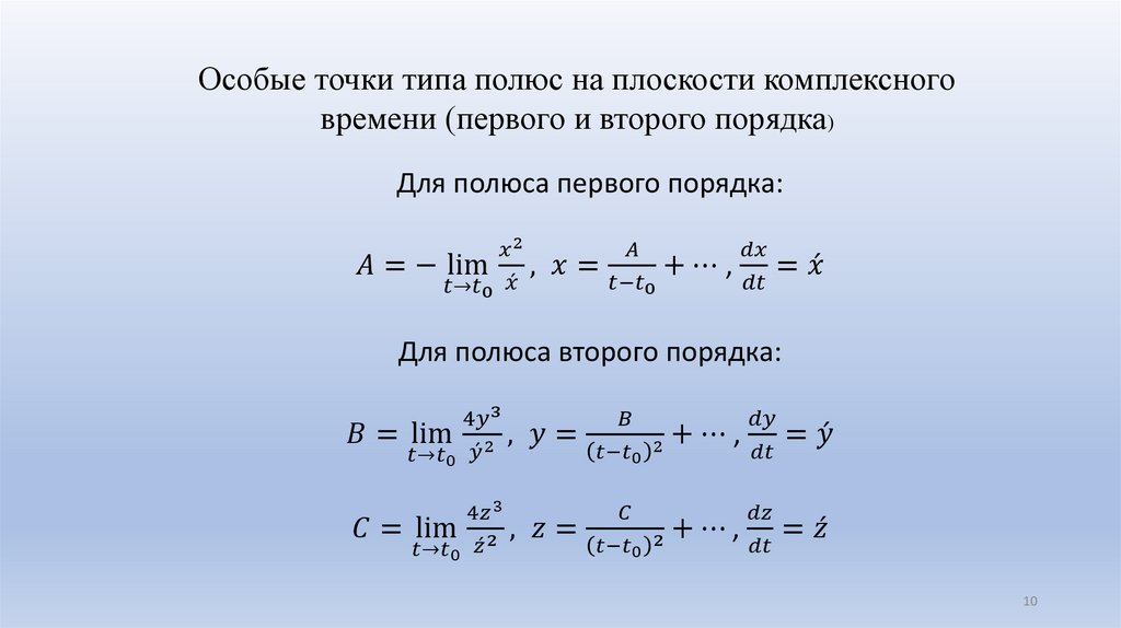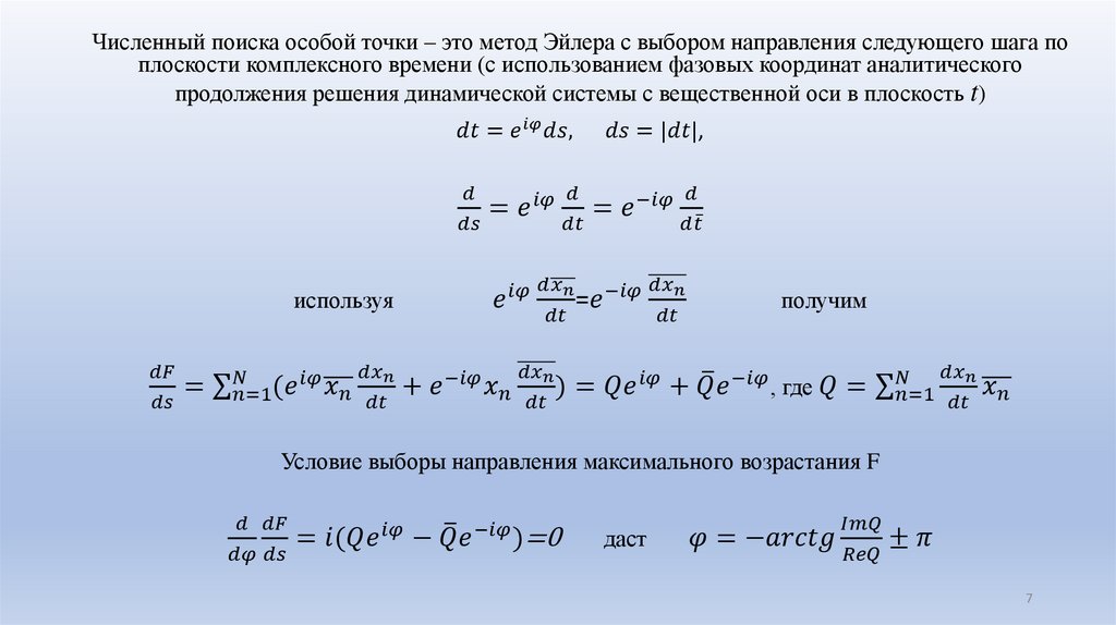 • Цель исследования была в алгоритмизации и программировании (на языке высокого уровня)численного метода поиска особых точек на плоскости комплексного времени для двух