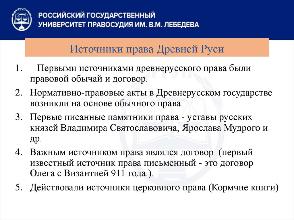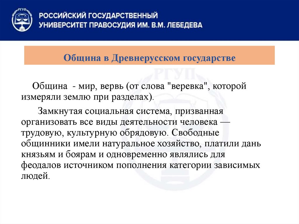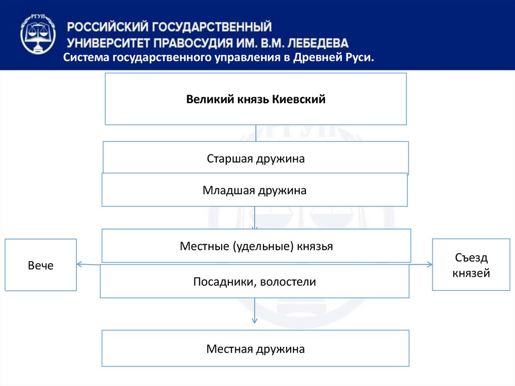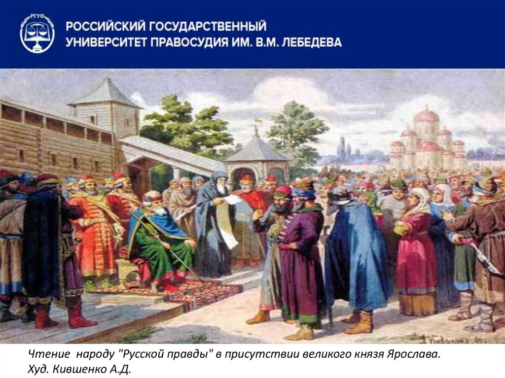 Русская Правда вводит понятие общегосударственных судебныхорганов – княжеских и общинных судов. При рассмотрении дел они