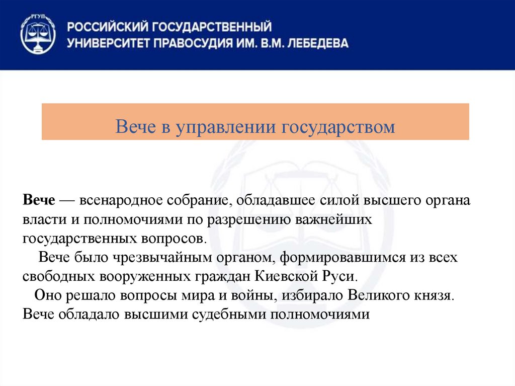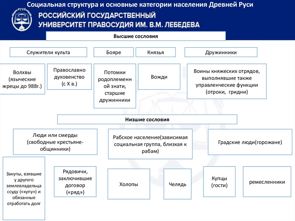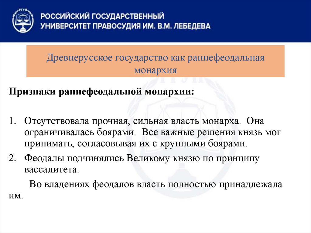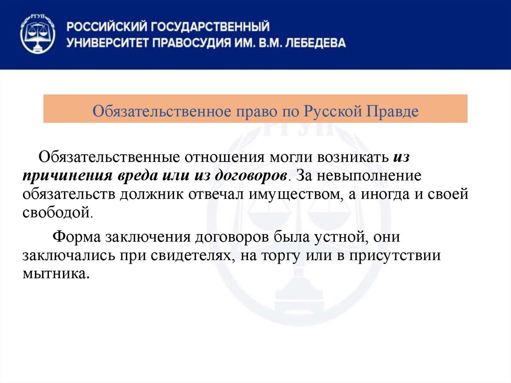 Русская Правда вводит понятие общегосударственных судебныхорганов – княжеских и общинных судов. При рассмотрении дел они