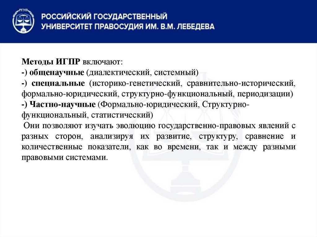6. Метод ИГПР это – способ исследования историко-правовых процессов и явлений, планомерный путь научного познания и установления