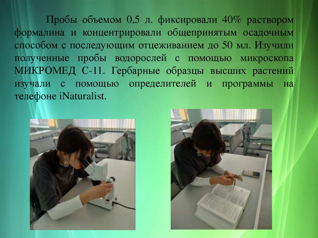Пробы объемом 0,5 л. фиксировали 40% растворомформалина и концентрировали общепринятым осадочным