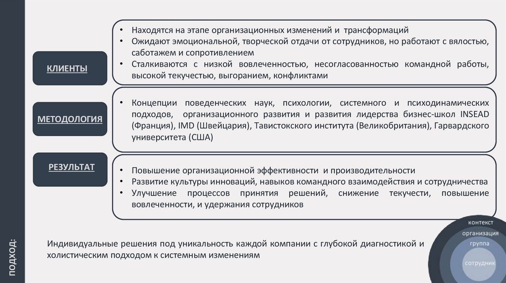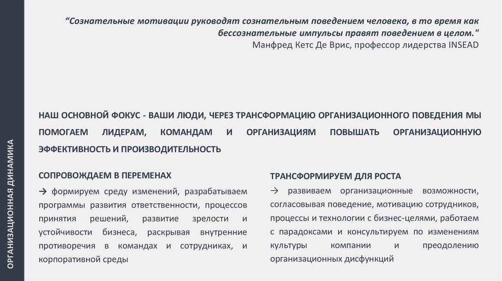 НАШ ОСНОВНОЙ ФОКУС - ВАШИ ЛЮДИ, ЧЕРЕЗ ТРАНСФОРМАЦИЮ ОРГАНИЗАЦИОННОГО ПОВЕДЕНИЯ МЫ