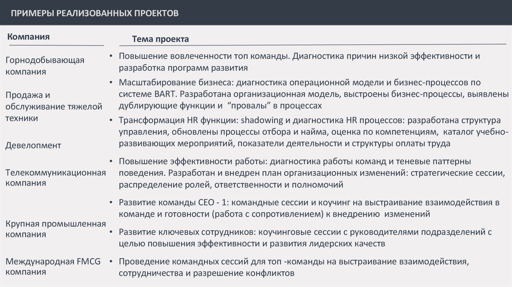 ПРИМЕРЫ РЕАЛИЗОВАННЫХ ПРОЕКТОВКомпания