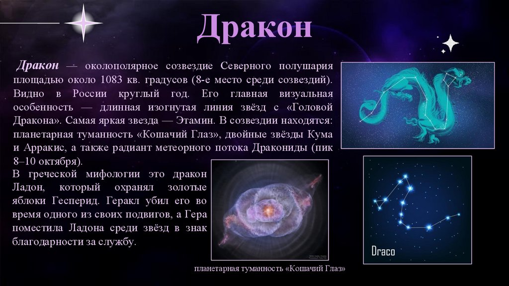 Дракона». Самая яркая звезда — Этамин. В созвездии находятся: