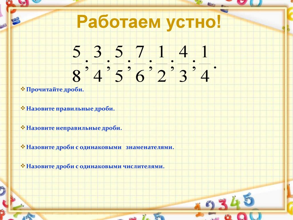 Назовите правильные дроби.