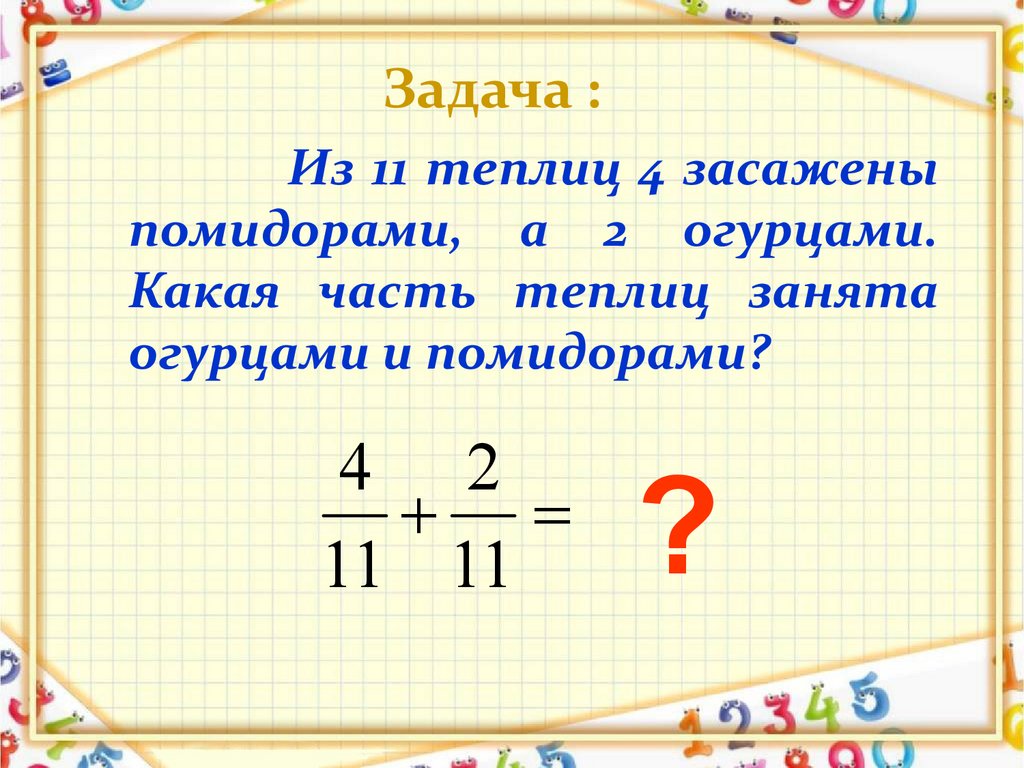 Задача :Из 11 теплиц 4 засажены